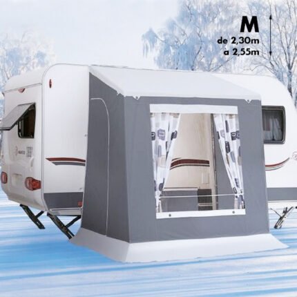 L’auvent Nagano 4 saisons pour caravanes et camping-cars, adapté aux remorques à neige.