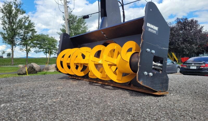 Une souffleuse de qualité construite qui fonctionne vraiment! La mini-souffleuse hydraulique répond aux exigences de votre mini-chargeuse qui lance de la neige jusqu’à 25 pieds tout en dégageant des sentiers jusqu’au sol.